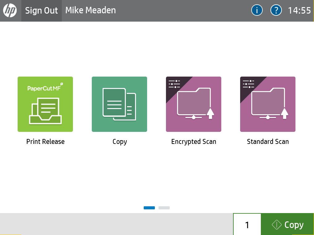 Once you have logged into the Photocopier, you are presented with 4 options.